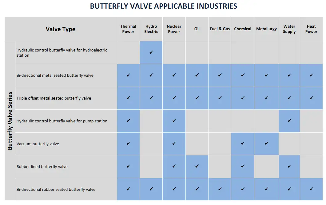 There are different kinds of butterfly valves, each adapted for different pressures and different usage. The zero-offset butterfly valve, which uses the flexibility of rubber, has the lowest pressure rating. The high-performance double offset butterfly valve, used in slightly higher-pressure systems, is offset from the center line of the disc seat and body seal (offset one), and the center line of the bore (offset two). This creates a cam action during operation to lift the seat out of the seal resulting in less friction than is created in the zero offset design and decreases its tendency to wear. The valve best suited for high-pressure systems is the triple offset butterfly valve. In this valve the disc seat contact axis is offset, which acts to virtually eliminate sliding contact between disc and seat. In the case of triple offset valves the seat is made of metal so that it can be machined such as to achieve a bubble tight shut-off when in contact with the disc. Please refer to technical details for further information.